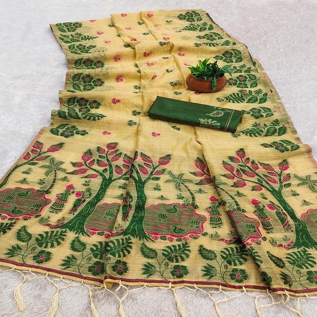 Nouveau Sari Indien pour Femme en Tissu de Soie de Coton Muga Doux, Motif Classique Tendance et Fantaisie Floral, avec Broderie Latkan et Effet Drapé Instantané