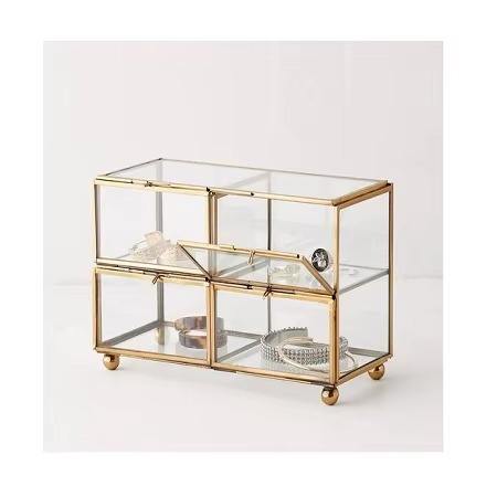 New Clear Glass Decorative Box, Small Metal Jewelry Case Trinket Box Organizer for Girls Women
