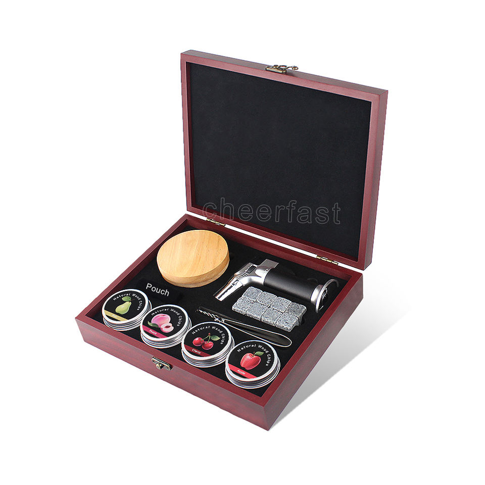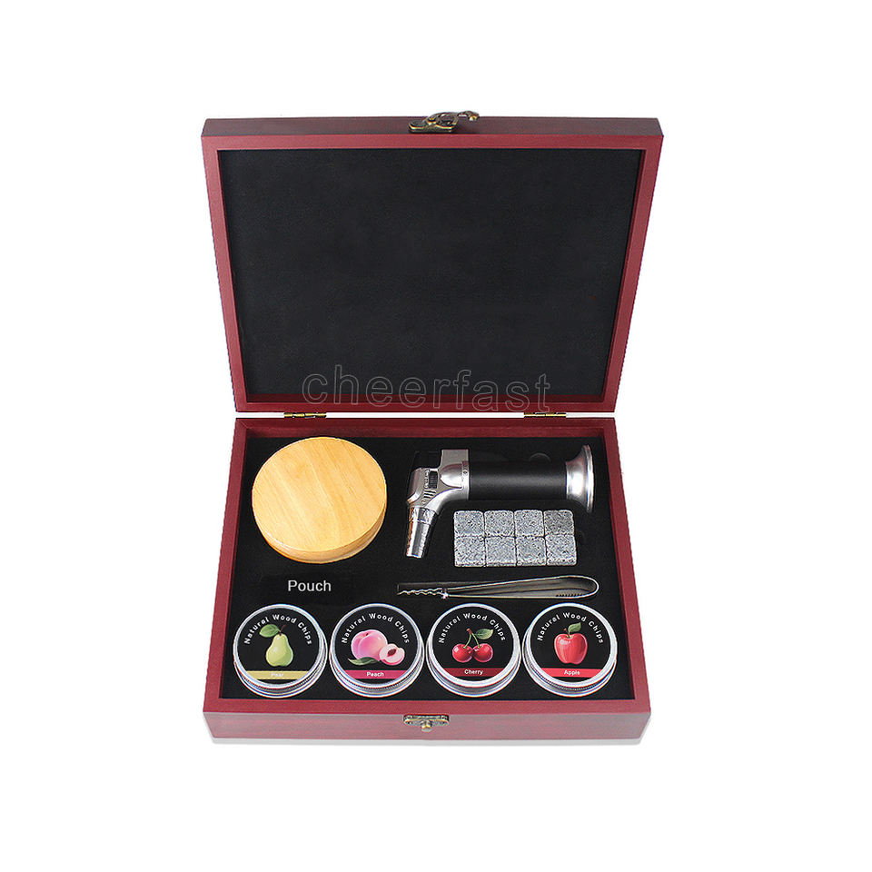 Nouveau kit de fumoir à cocktails en bois rouge et ensemble de fumoir à whisky avec torche, copeaux de bois naturels de pêcher, de cerisier, de chêne, de poirier et de noix de pécan