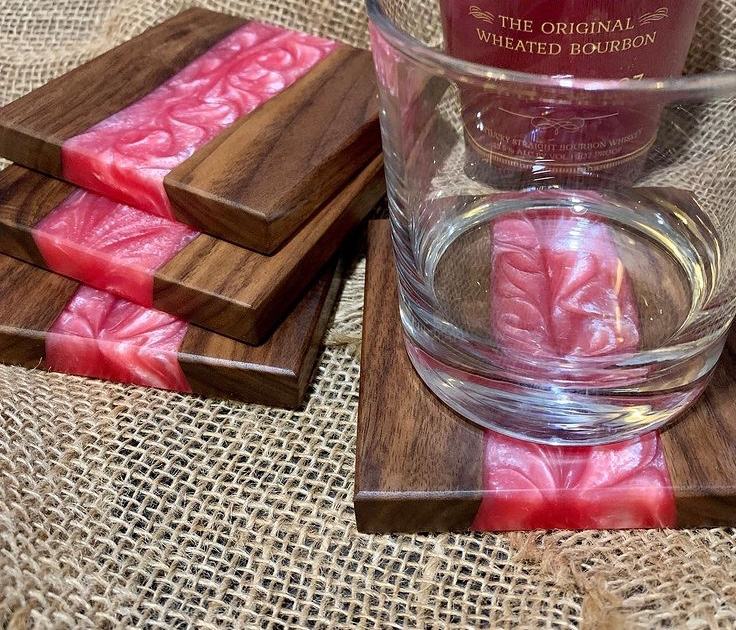 Nouvelle collection Bois d'acacia Design Résine & Bois design unique Dessous de verre à thé fait main Ensemble de 4 pièces
