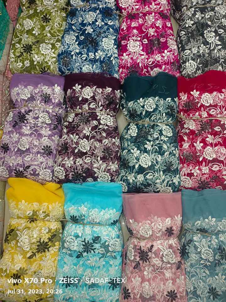 Nouvelle collection de tissu net à broder en coton pour mariage et fête disponible au prix de gros depuis l'Inde