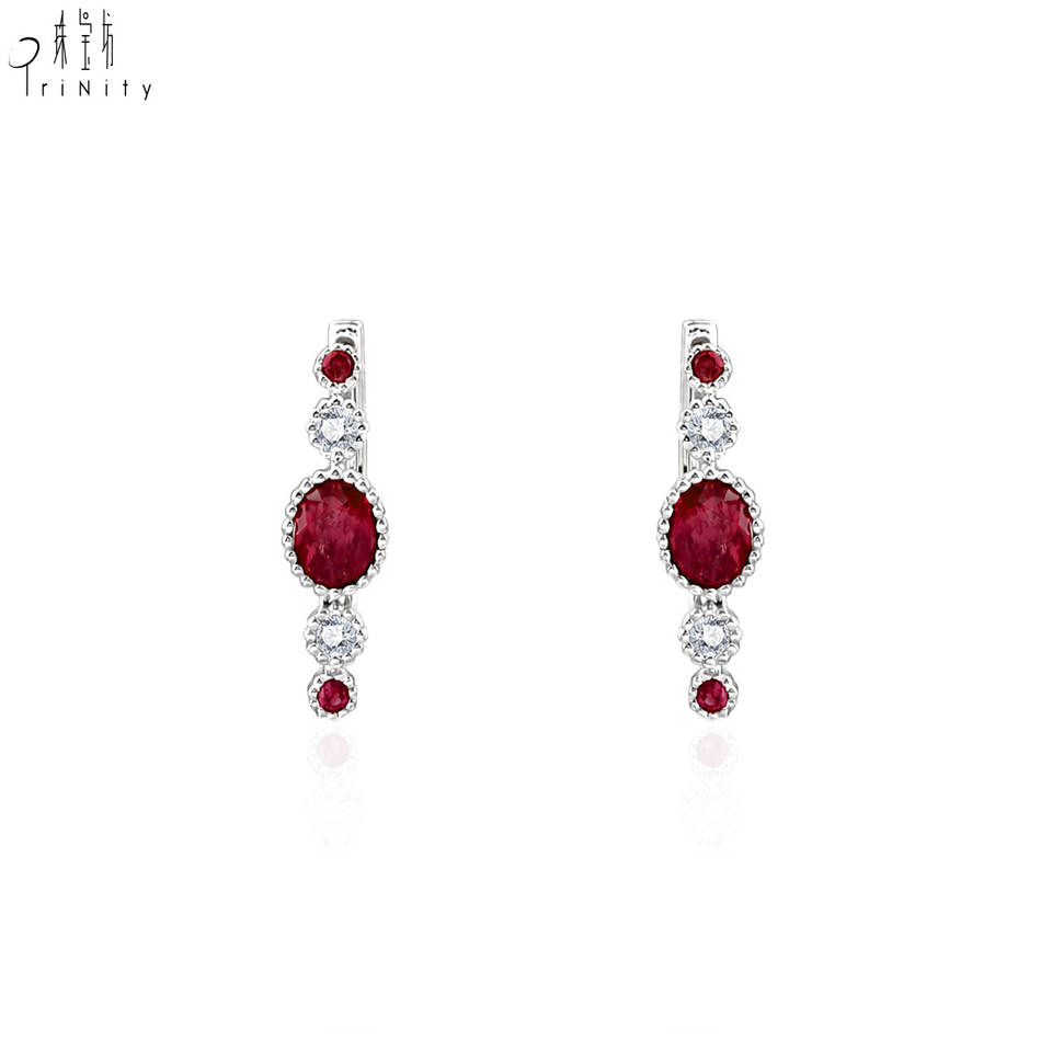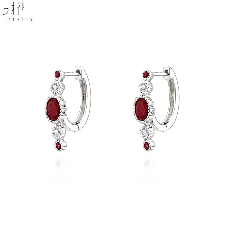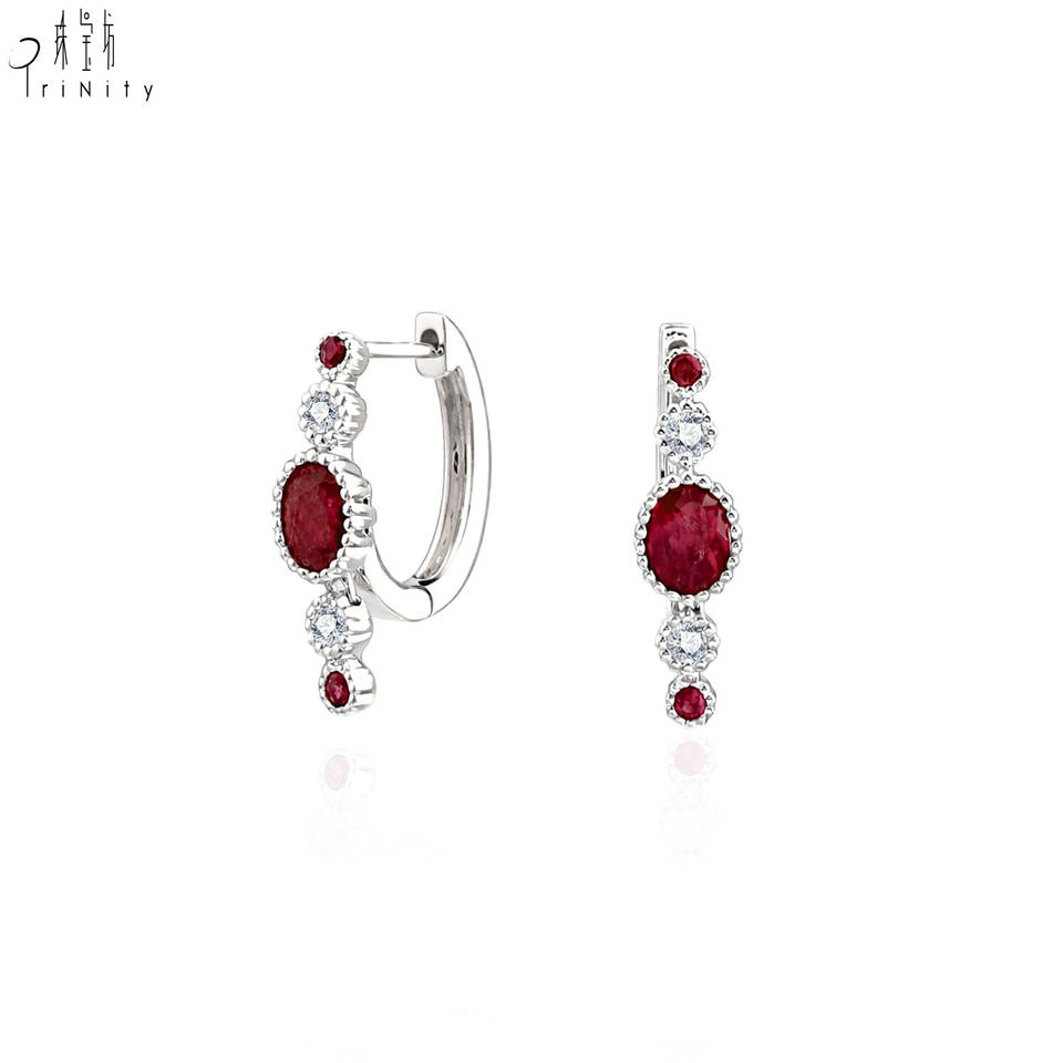 Nouvelle collection, design antique délicat, boucles d'oreilles en or blanc massif 18 carats avec pierres précieuses naturelles rubis et diamants, cadeau pour femme
