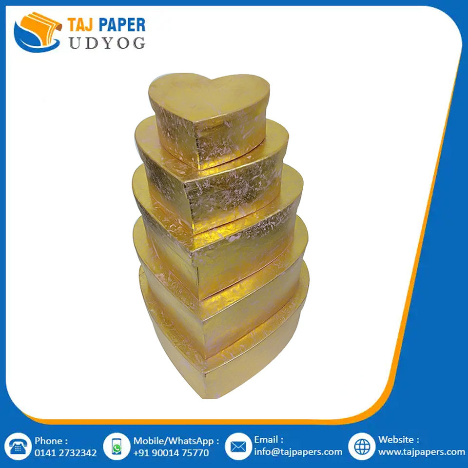 Nouvelle collection de boîtes en forme de cœur en papier doré pour cadeaux fantaisie Petites et grandes tailles personnalisées Boîte à couvercle en papier recyclable faite à la main