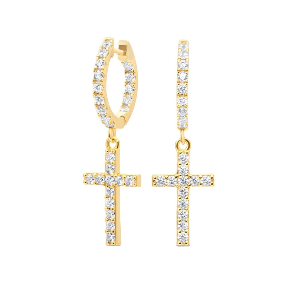 Nouvelle collection de boucles d'oreilles créoles Huggie Cross entièrement glacées en argent sterling avec bijoux personnalisés plaqués or