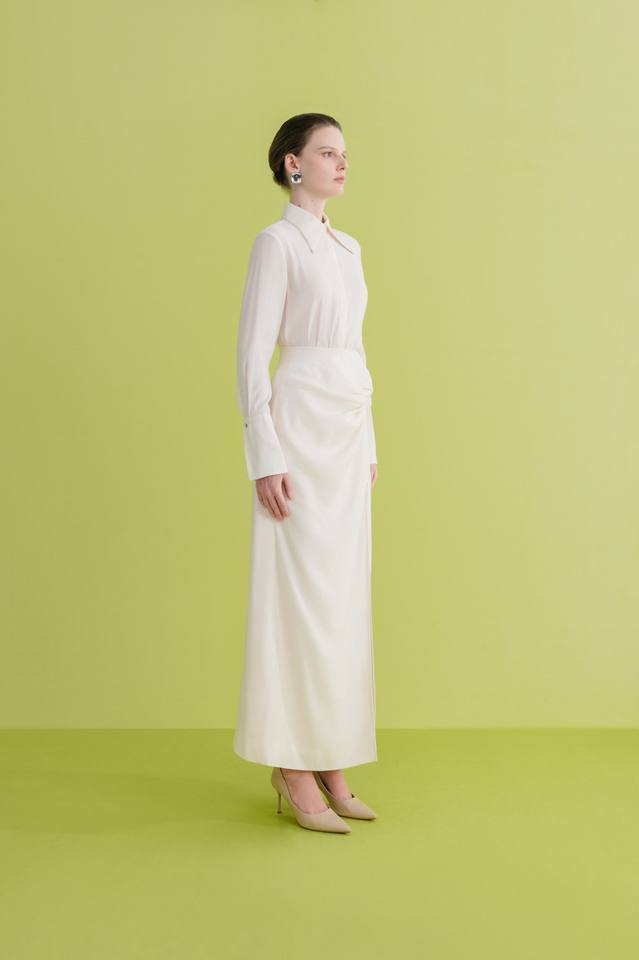 Nouvelle Collection Bon Prix ELINA CHEMISE À COL POINTU Chemisiers À Manches Longues Pour Femmes Chemises À Col Perlé Tissu Modal