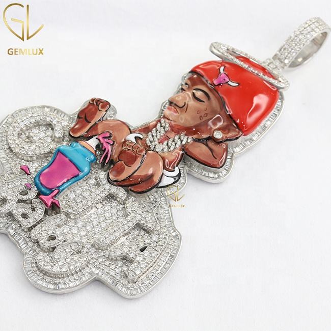 Nouvelle Collection Iced Out Fine Jewelry Émail Cartoon Design Avec VVS Moissanite Lettre Rappeur Hiphop Pendentif