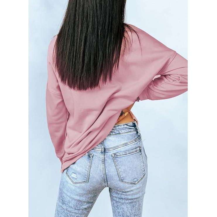 Nouvelle Collection De Luxe À Manches Longues Col Rond Épaule Pente Solide Confortable Casual Femmes Sweat En Coton Du Bangladesh