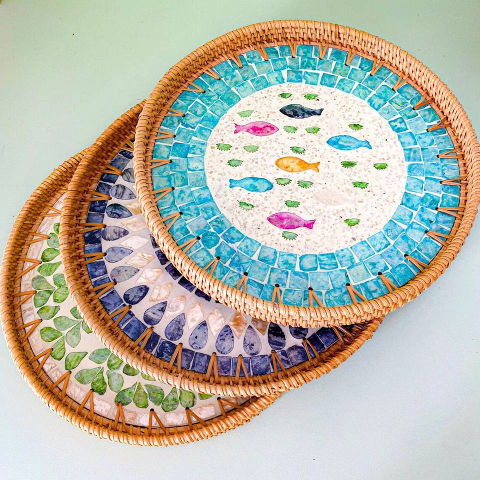 Mother Of Pearl Rattan TrayProduct name