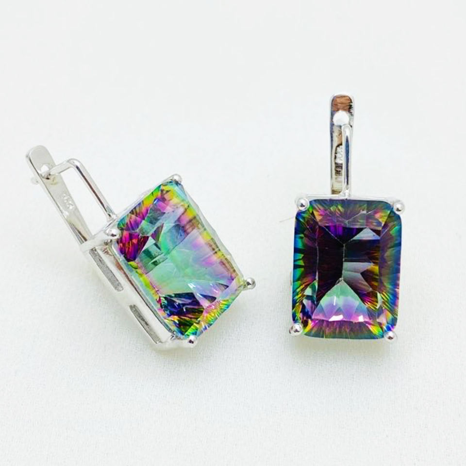 Nouvelle collection de boucles d'oreilles en argent sterling 925 à quartz mystique à facettes octogonales idéales pour les dames
