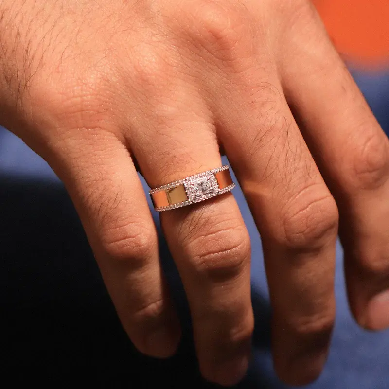 Nouvelle collection : Bague solitaire pour homme avec diamant de laboratoire et pierre d'appoint, design spécial pour le marié, provenant d'un fournisseur indien.