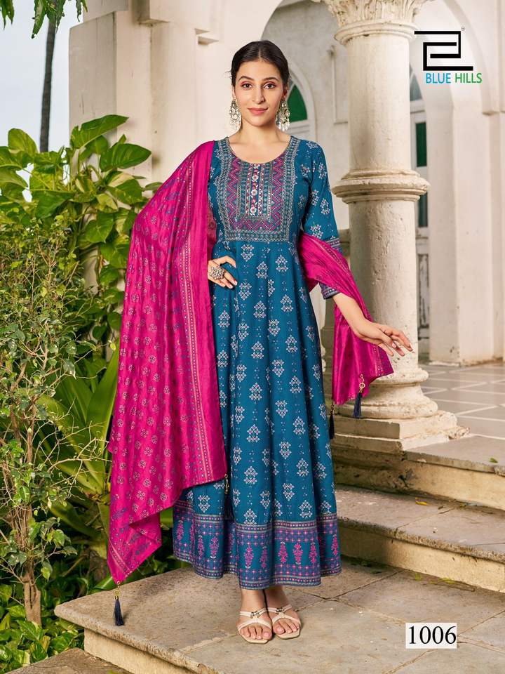 Dernière robe Anarkali à imprimé rayonne avec Dupatta Robe Anarkali brodée élégante parfaite pour les occasions de mariage et de fête