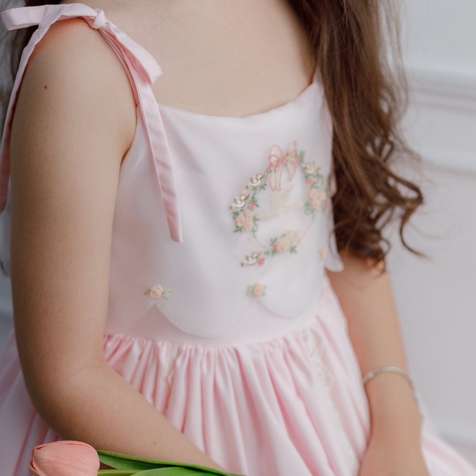 Nouvelle Collection Été Automne 2024 Broderie Perles Sans Manches En Gros Robe Rose Pour Bébé Fille Enfant Mode-Auria