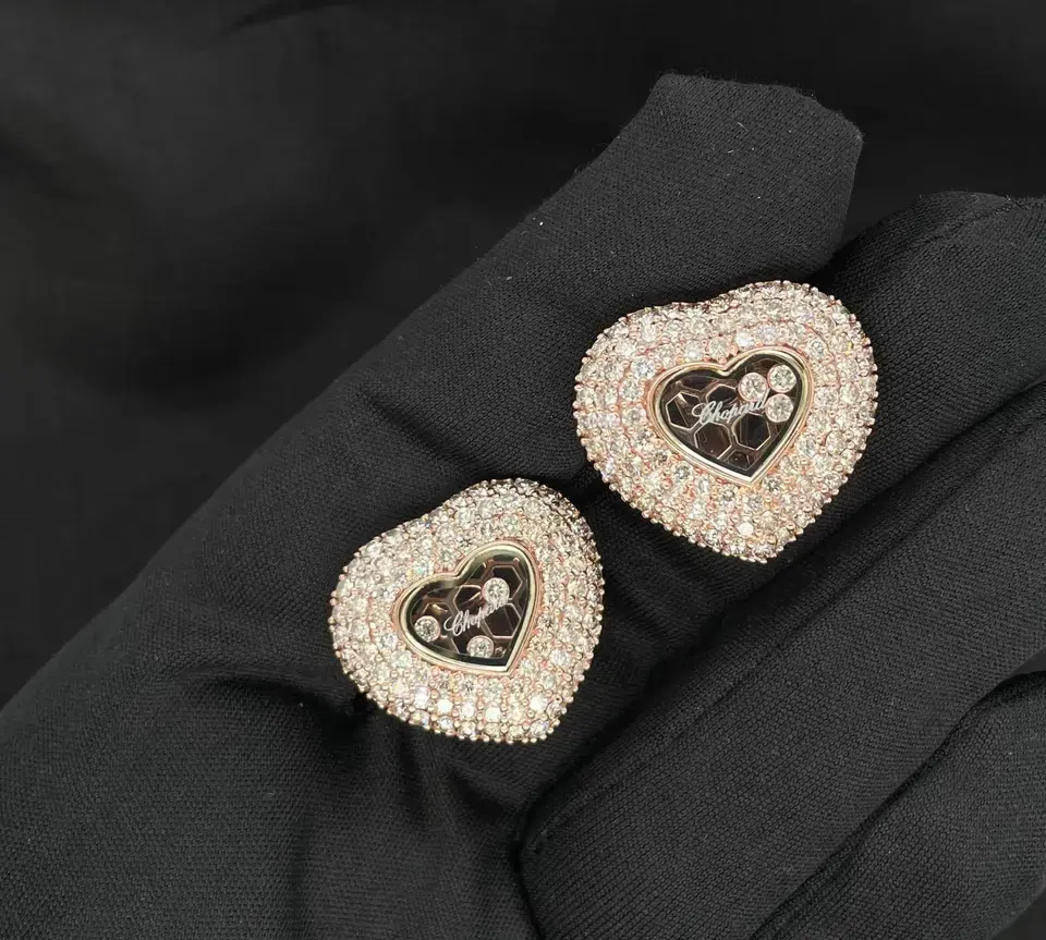 Nouvelle collection tendance : Boucles d'oreilles en or rose 18 carats en forme de cœur avec diamant mobile en verre pour fiançailles, mariages et soirées