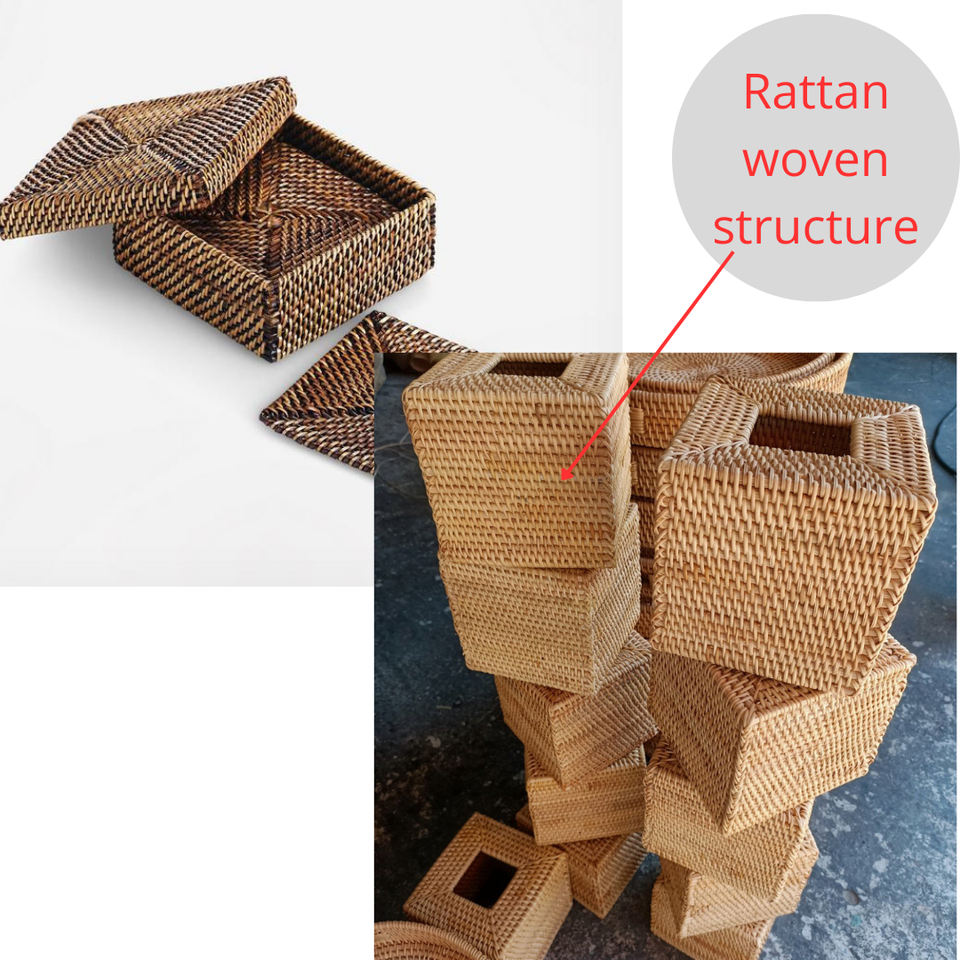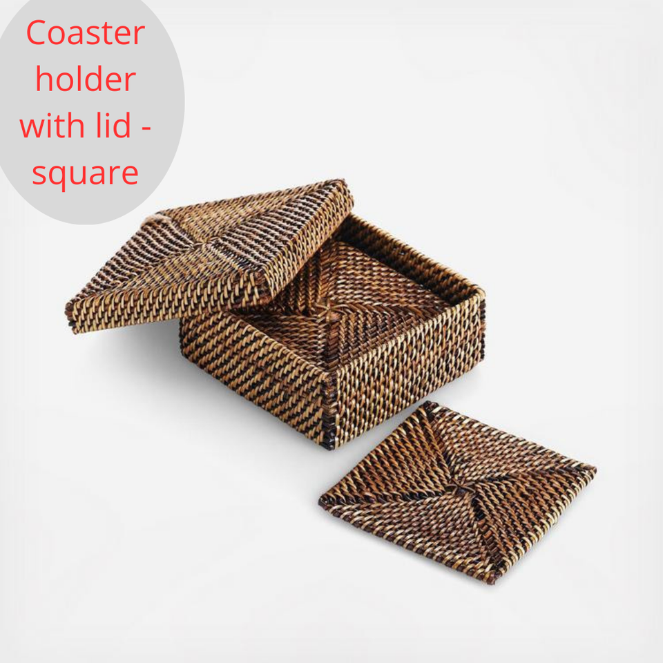 New Collection of Woven Rattan Square Coaster Holder Without Connecting Edge Between Lid and Container Customized
