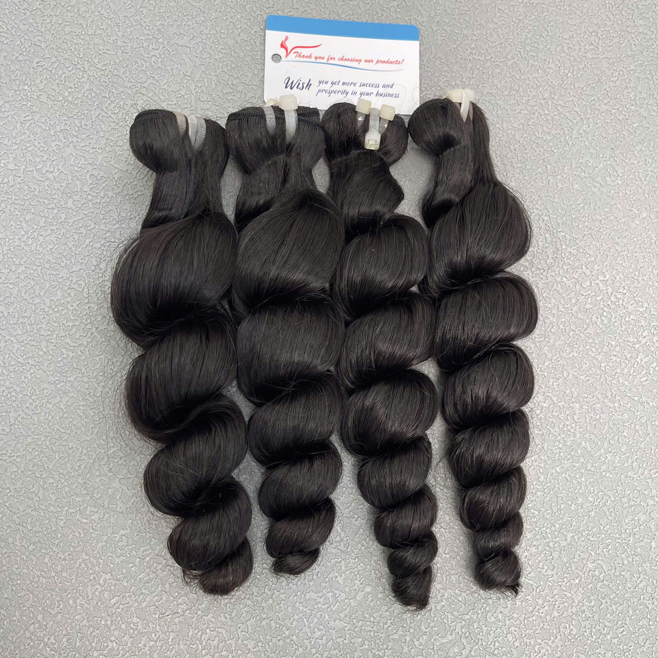 Nouvelles collections de cheveux vierges noirs Remy tissage de paquets vietnamiens Super Double Drawn processus de vapeur de vague lâche pré-commande