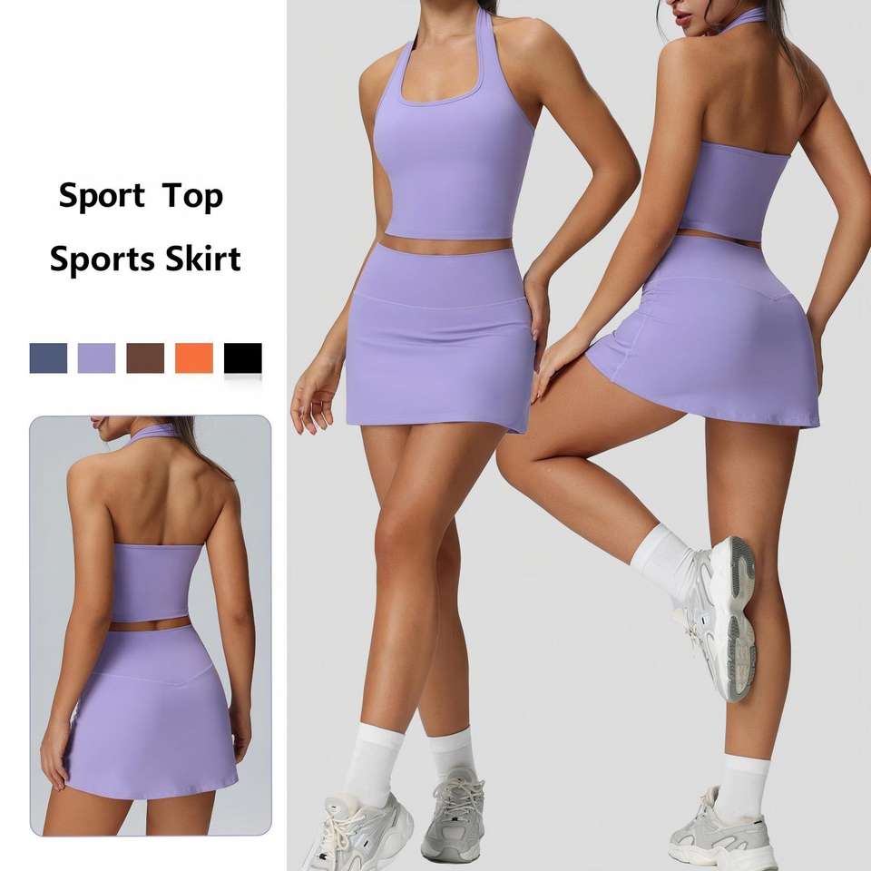 Nouvelle couleur taille européenne taille Logo évacuation de l'humidité séchage rapide jupe et haut à licou ensemble de Sport pour les femmes Yoga athlétique Golf Tennis