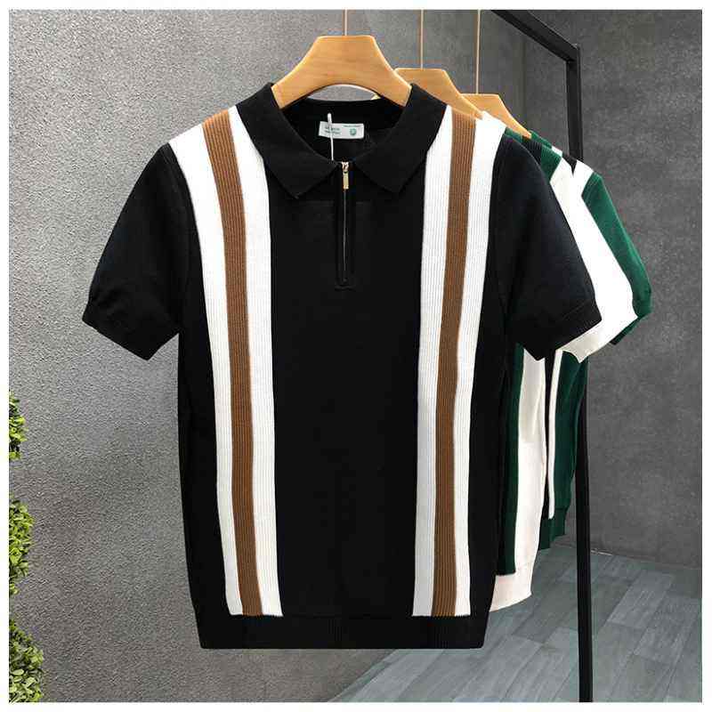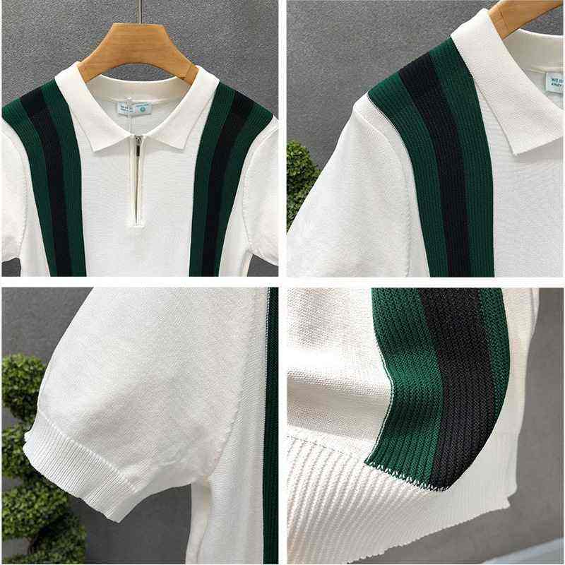 Nouvelle couleur assortie revers rayé demi fermeture éclair décontracté à manches courtes pour polo