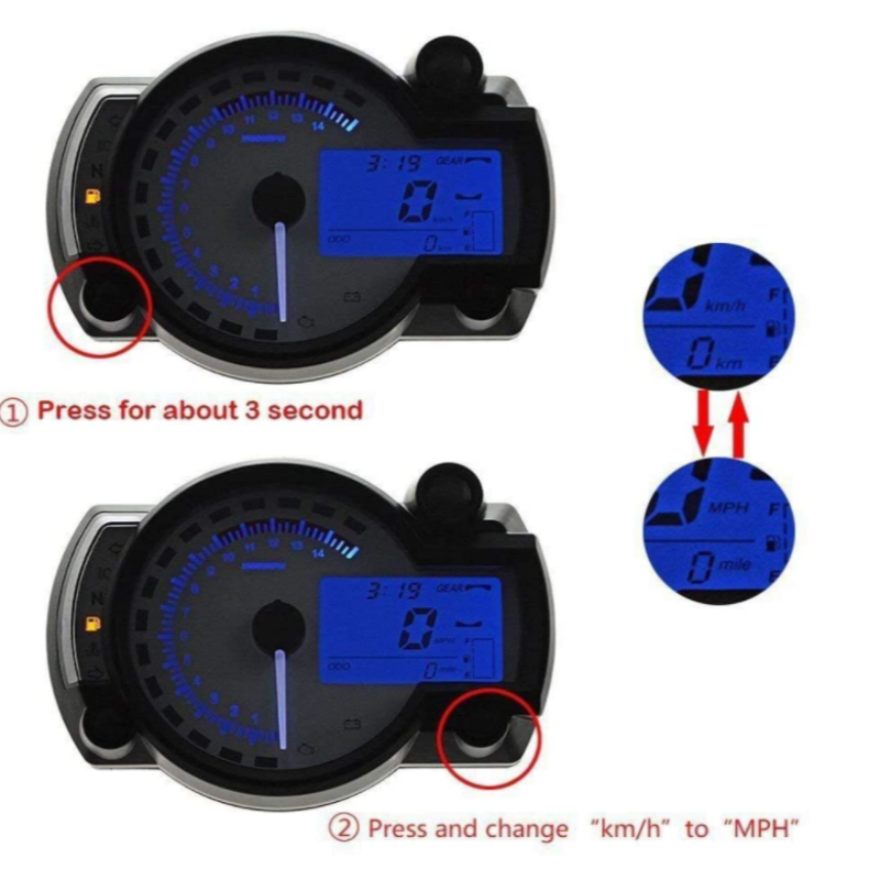 Nouveau tachymètre couleur universel moto compteur de vitesse numérique pour la lumière du soleil 14000 tr/min 299 Kmh Mph 7 Quad Frenzy ATV