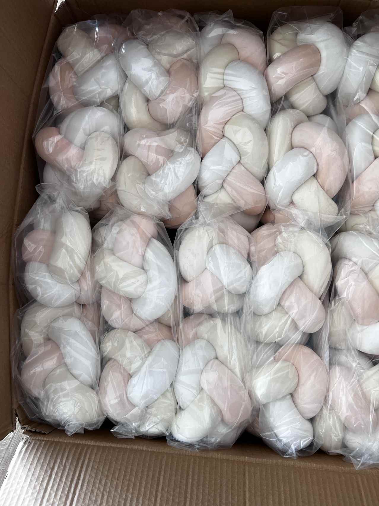 Coussin en peluche rose et gris fait à la main, nouvelle couleur, vente en gros, coussin à nœud pour la décoration de la maison