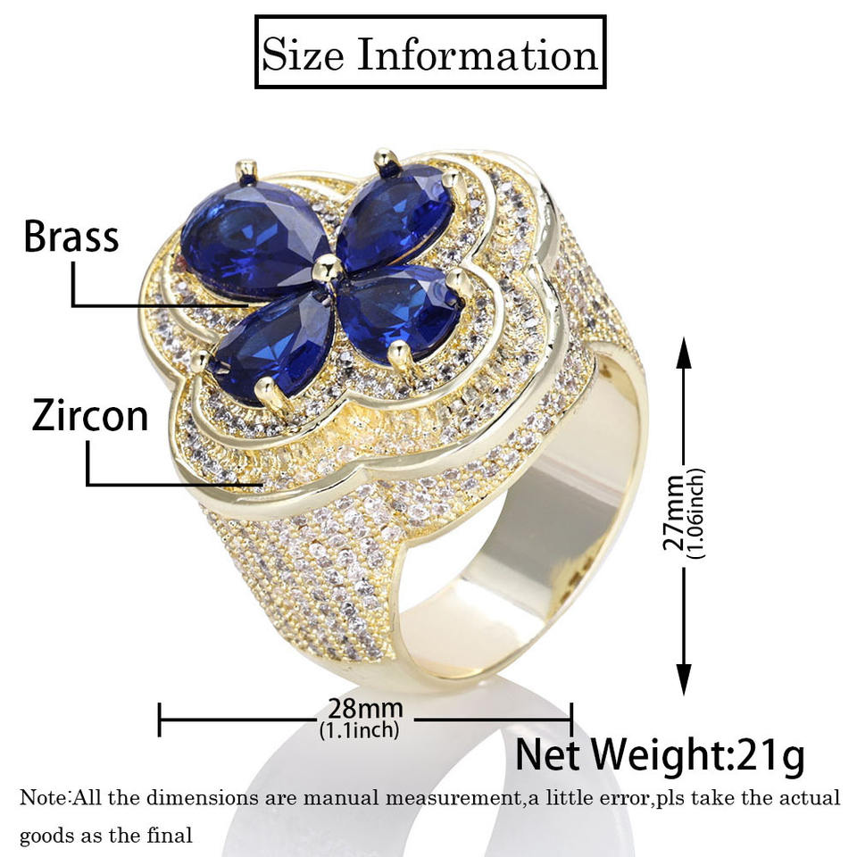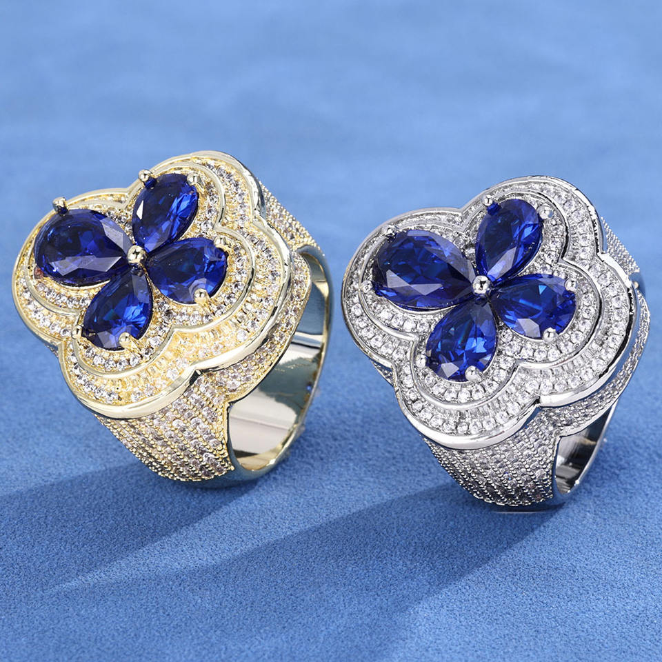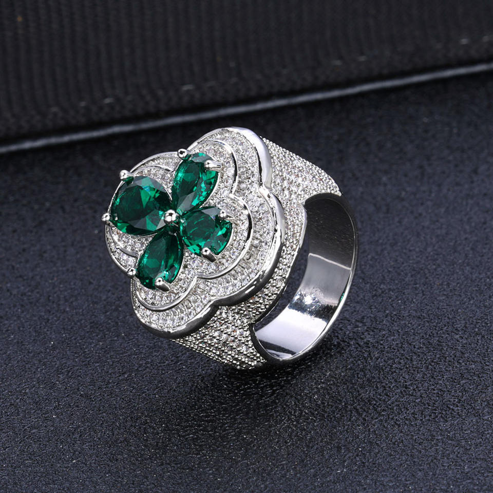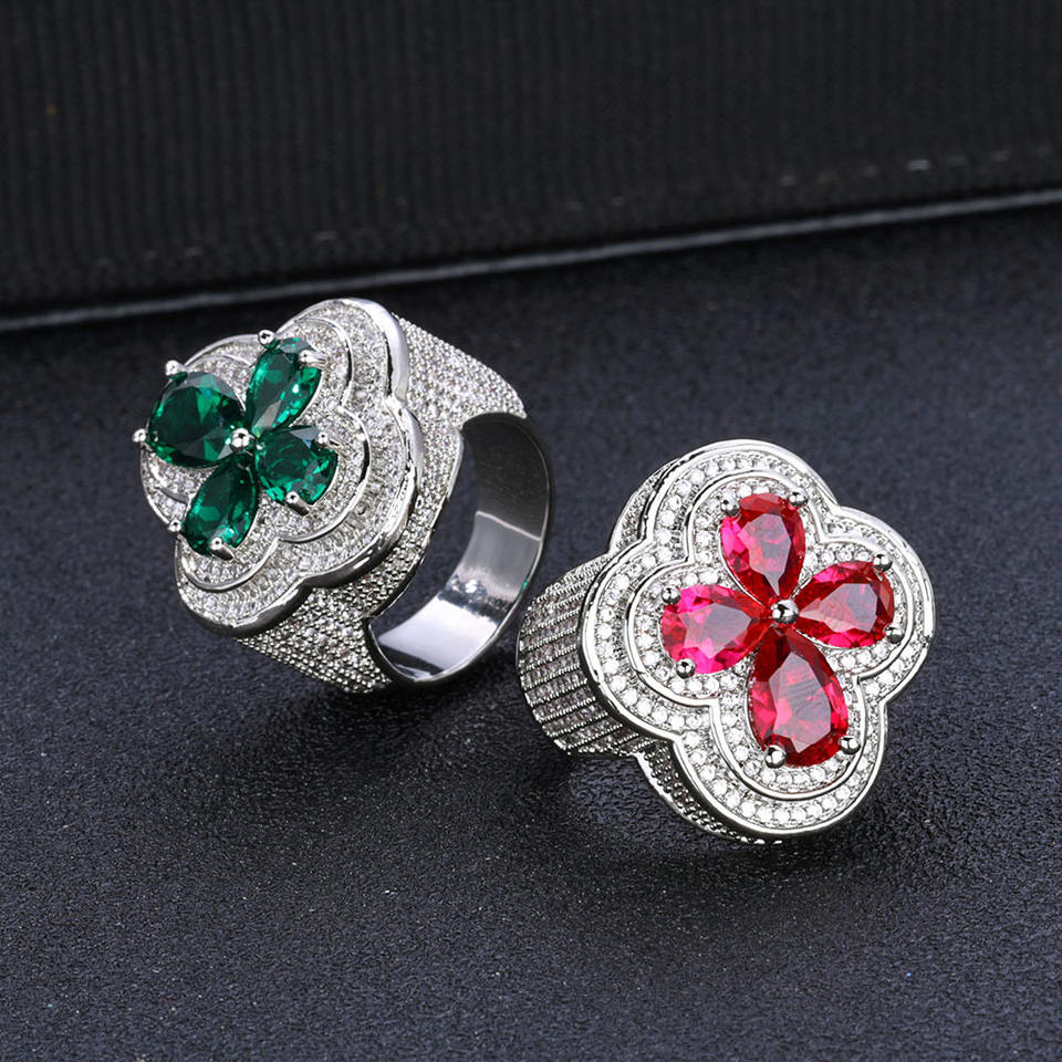 Nouvelle bague colorée en forme de fleur pour homme, style hip-hop, micro-zircon, trèfle à quatre feuilles