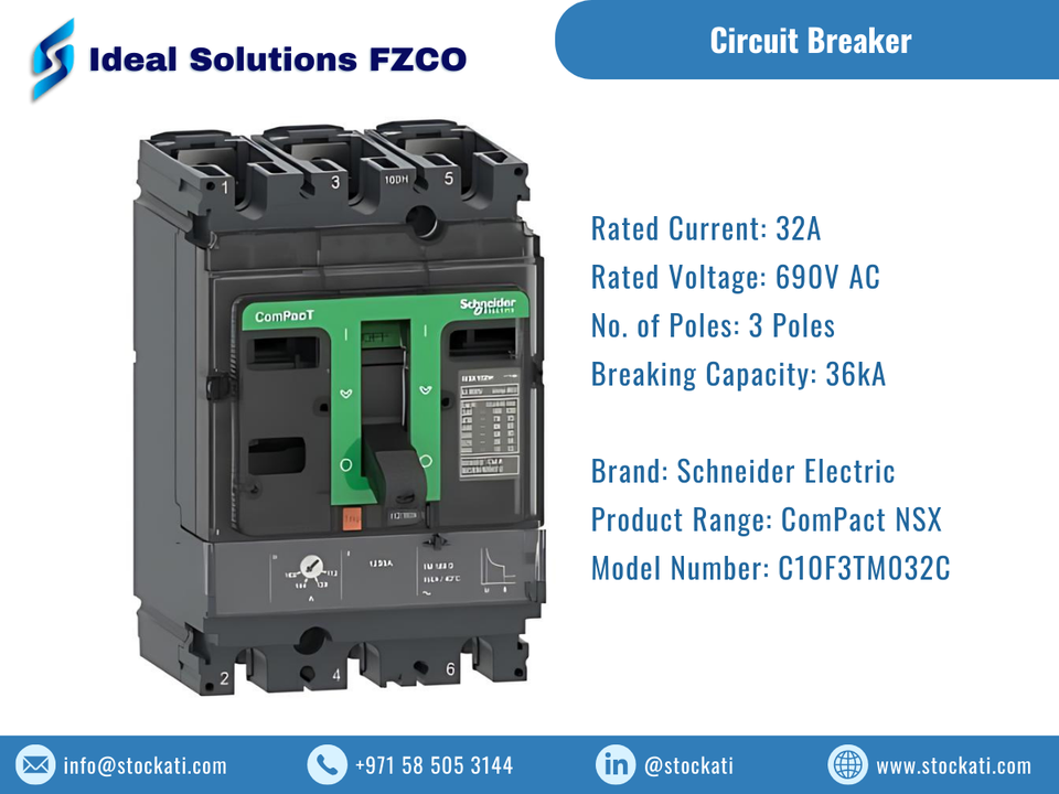 Nouveau ComPacT NSX100F C10F3TM032C-Disjoncteur 32A-36kA à 415VAC-déclencheur TMD-3 pôles 3d-Original-Haute qualité