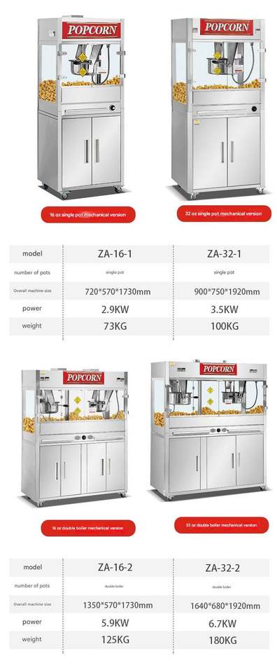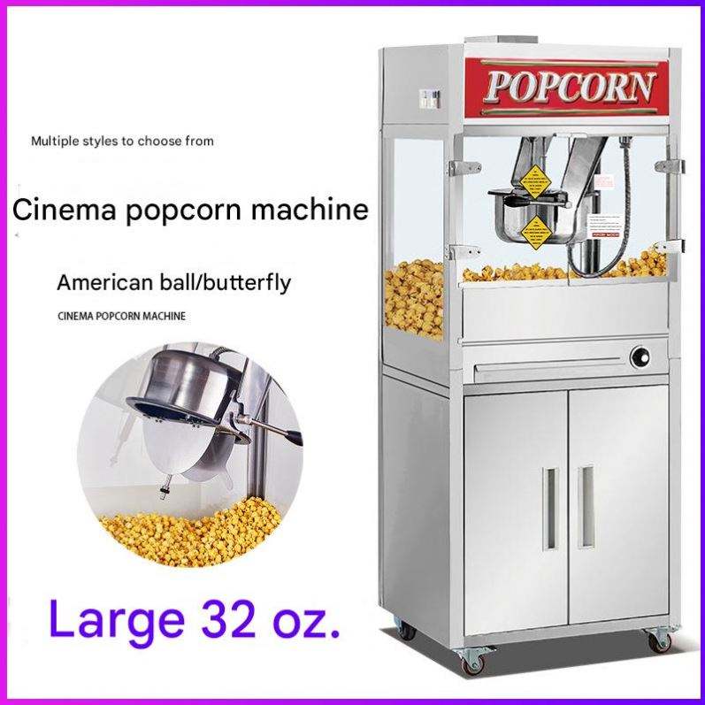 Nouvelle machine à popcorn commerciale 16oz/32oz, machine à faire des pop-corn automatique, type sur pied avec armoire