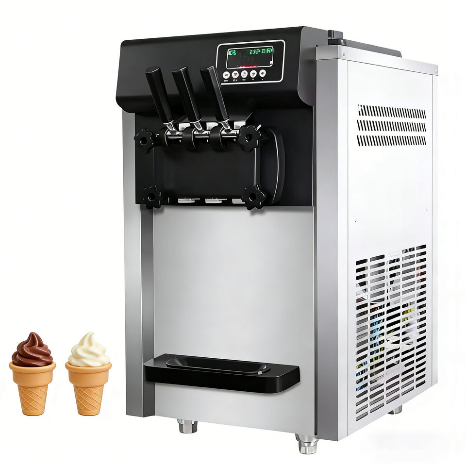 Nouvelle machine à glace molle commerciale en acier inoxydable, trois saveurs, contrôle numérique, haute efficacité, 220V, pour café et restaurant