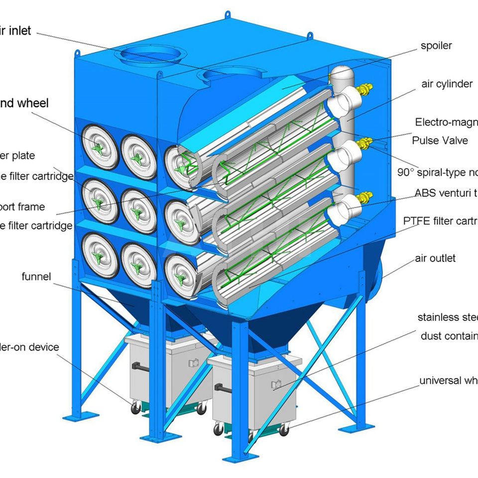 Nouveau collecteur de poussière pour travaux de construction, filtre à impulsions, cartouche filtrante, composants principaux incluant moteur, application de collecte de poussière