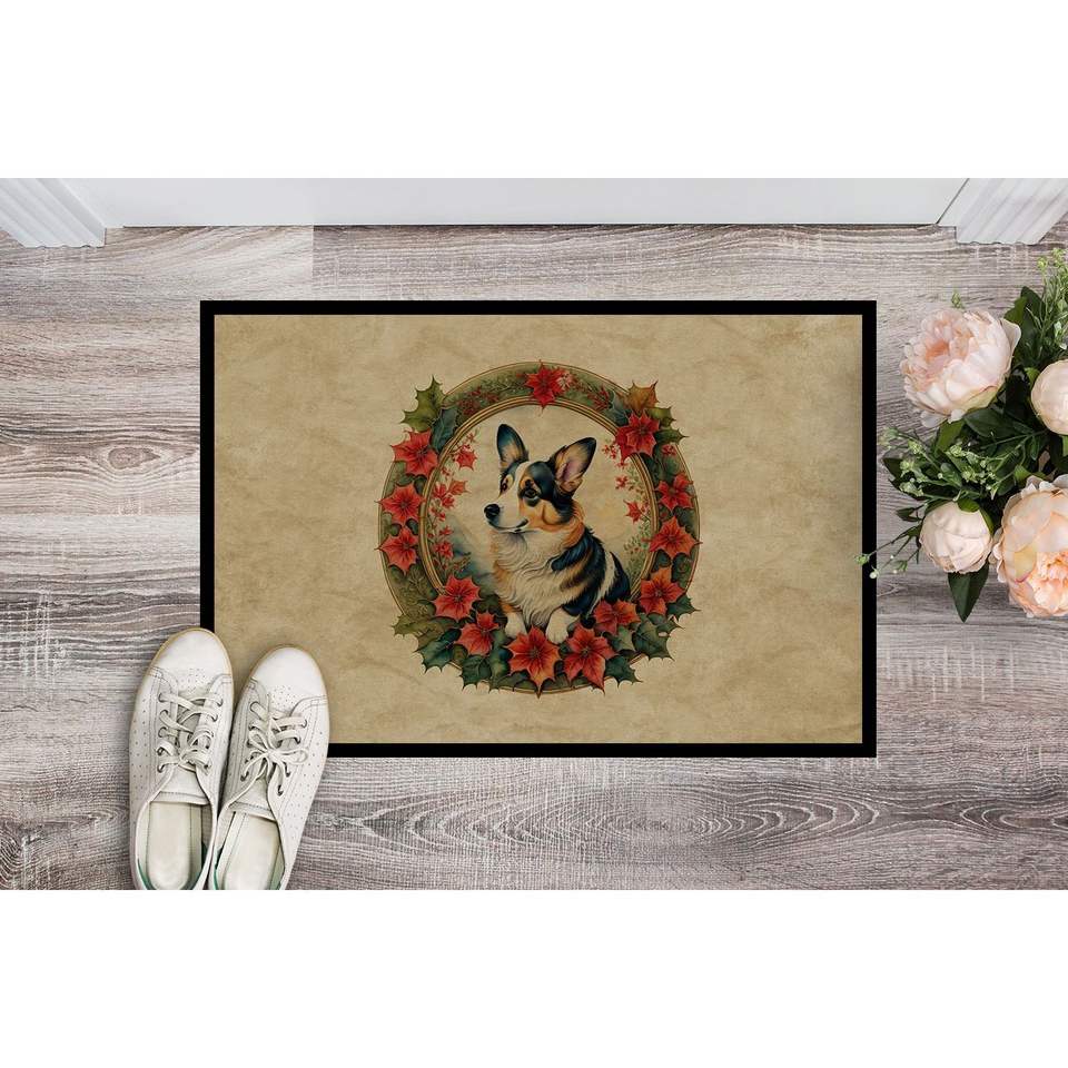 New Corgi Christmas Flowers Doormat Non-Slip Washable Low Pile 18H X 27W Indoor and Outdoor Front Door Mat for Entryway