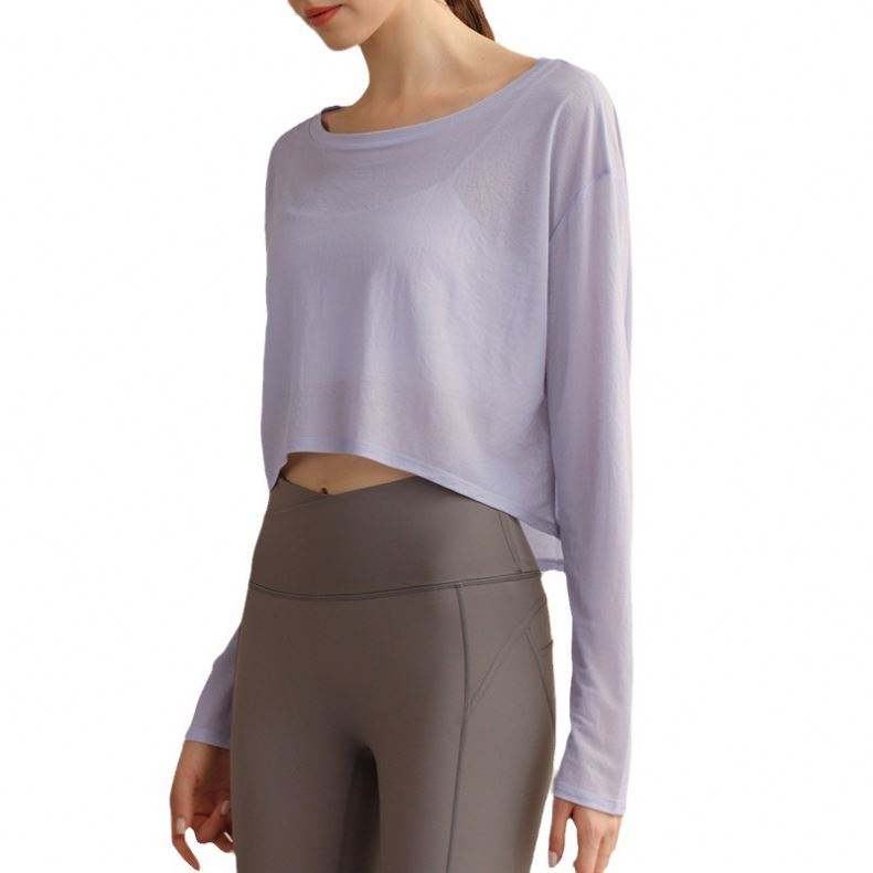 New Cotton Yoga Top Women Loose Thin Breathable Smock Long Sleeve T-shirt