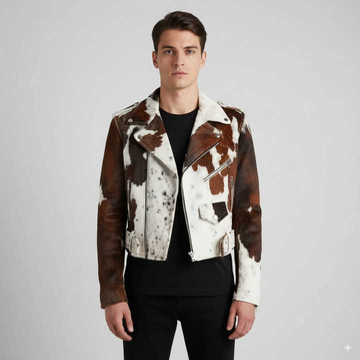 Nouvelle veste en cuir de vachette et toile pour homme, veste de motard en cuir véritable, coupe courte, coupe régulière et ajustée, veste de moto pour homme