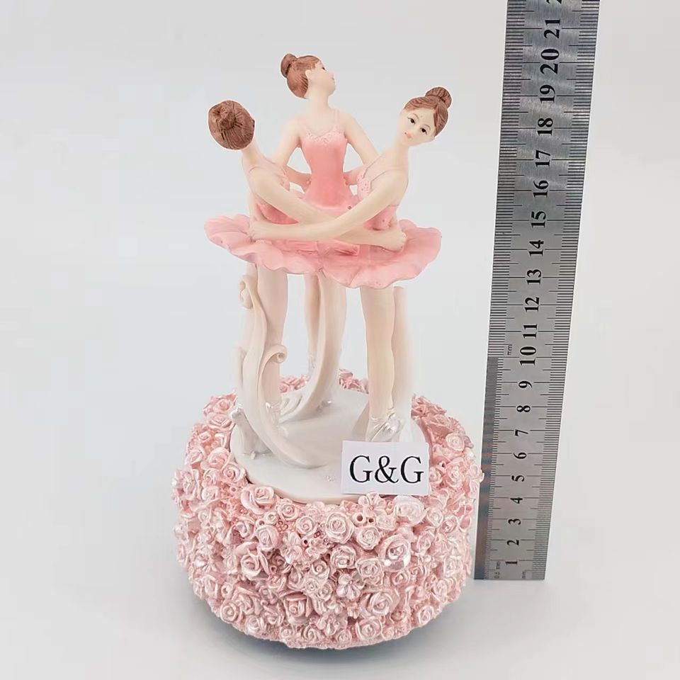 Nouveau cadeau de vacances créatif Rose Pink Ballet Girl Three Sisters Boîte à musique rotative en résine