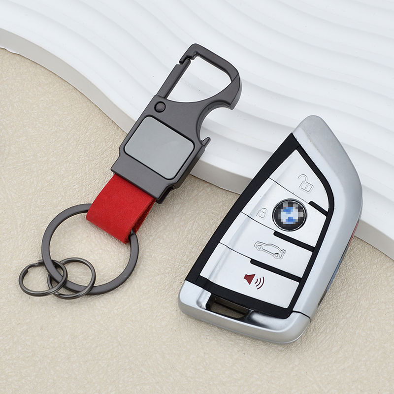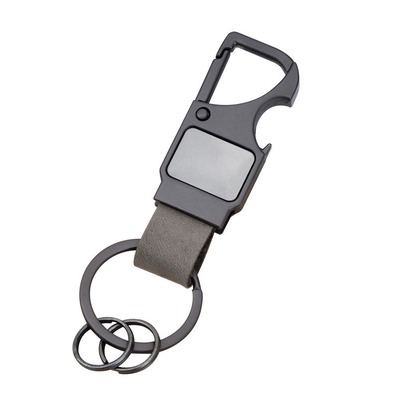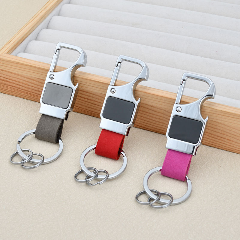 Nouveau porte-clés transfrontalier en cuir véritable multifonctionnel avec décapsuleur, porte-clés créatif pour homme, pendentif métallique gravé au laser