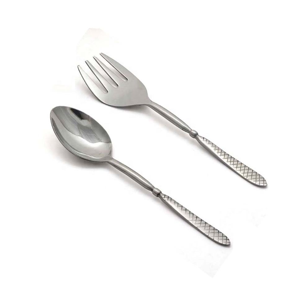 Nouvelle doublure croisée sur demi-poignée Design noeud moyen ensemble de service de salade fait main en acier inoxydable brillant poli