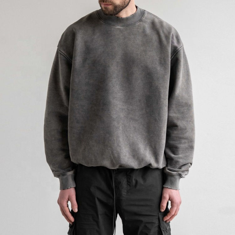 Nouveau sweat-shirt personnalisé délavé à l'acide pour hommes surdimensionné Vintage lavé sweats à col rond pour hommes