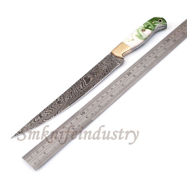 Couteau de pêche forgé à la main, ustensile à filet de damas avec une couverture fourreau en cuir (smk1632), nouveau