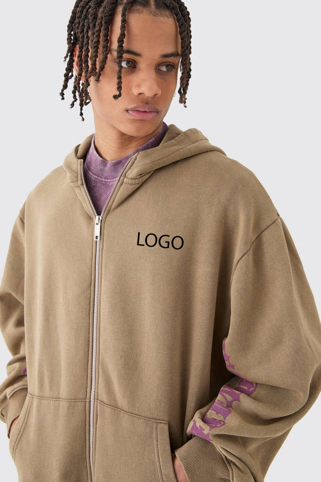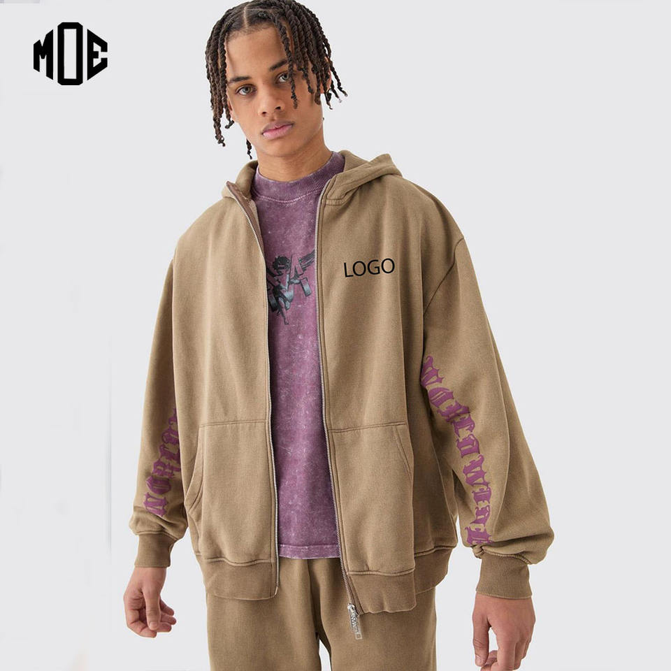 Nouveau sweat à capuche streetwear en coton 100% avec logo personnalisé, surdimensionné, à épaules tombantes, col cheminée, sans cordon, fermeture éclair, polaire d'hiver, lavage à l'acide
