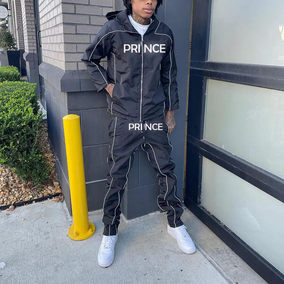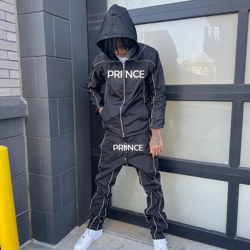 Prince Industry derniers hommes deux pièces ensembles survêtements personnalisés pantalons en nylon Baggy survêtements ensemble survêtement en nylon personnalisé hommes
