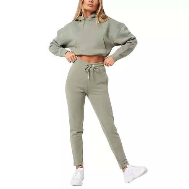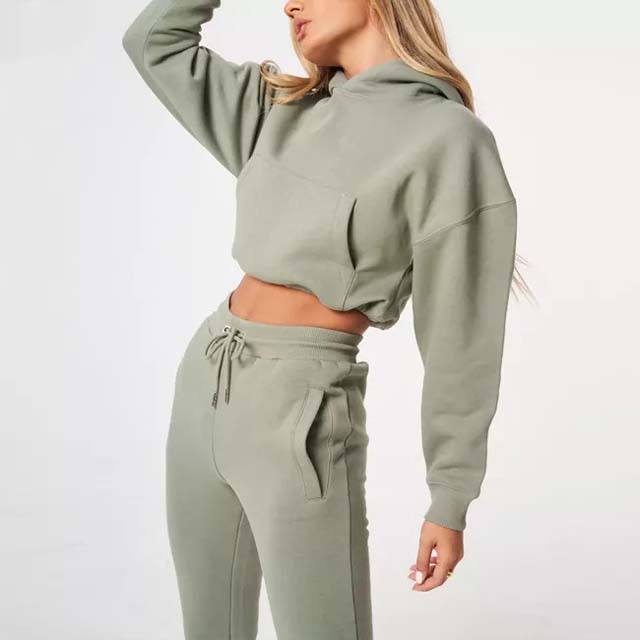 Nouveau Logo Personnalisé Survêtements Crop Tops Jogging Pantalon de Survêtement et Sweat à Capuche Ensemble Femmes 100% Coton Survêtements et Survêtements Ensembles