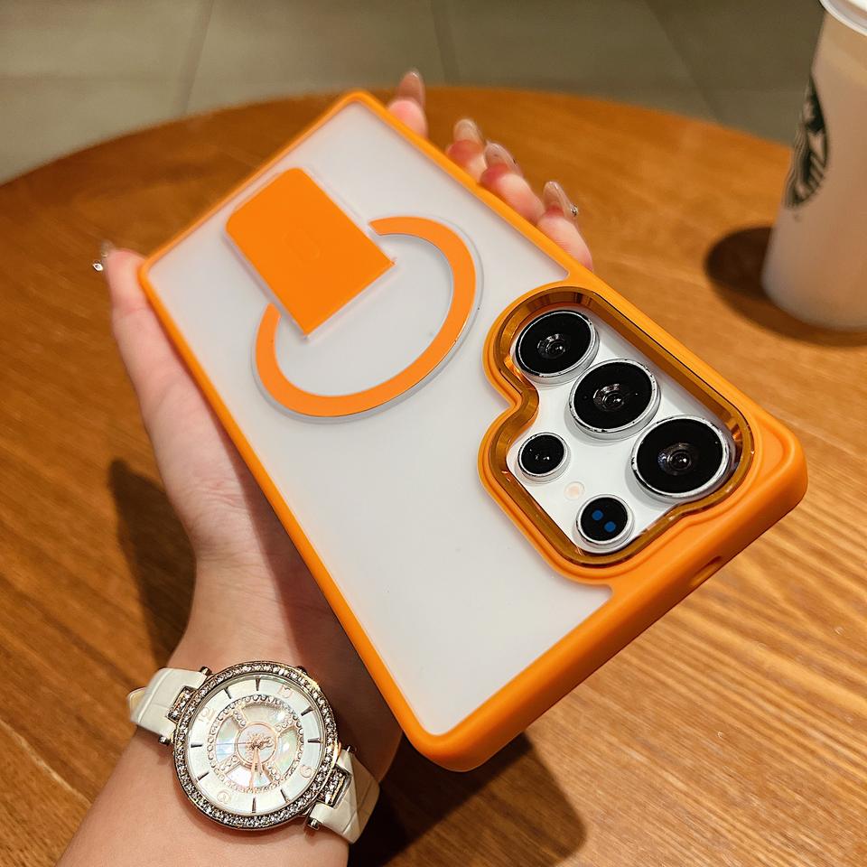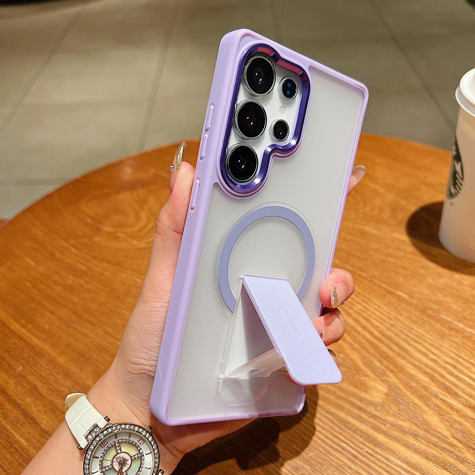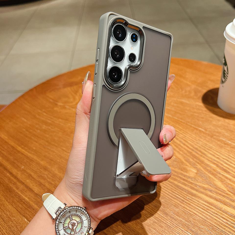 Nouvelle coque de téléphone personnalisée de luxe pour Samsung S25 24 23 Ultra, magnétique, antichoc, pliable, mate, en PC, avec support invisible, protection