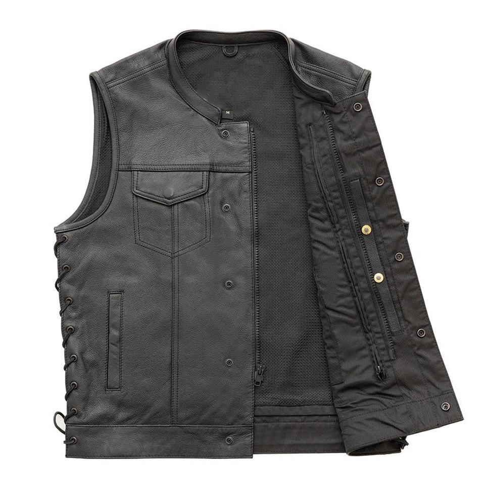 Nouveaux gilets en cuir sur mesure, haute qualité, mode, respirants, vente en gros, multi-poches, gilet tactique en cuir pour moto, pour homme