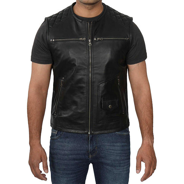 Nouveau gilet en cuir décontracté à la mode pour hommes sur mesure coupe ajustée vestes de gilet en cuir de motard pour hommes
