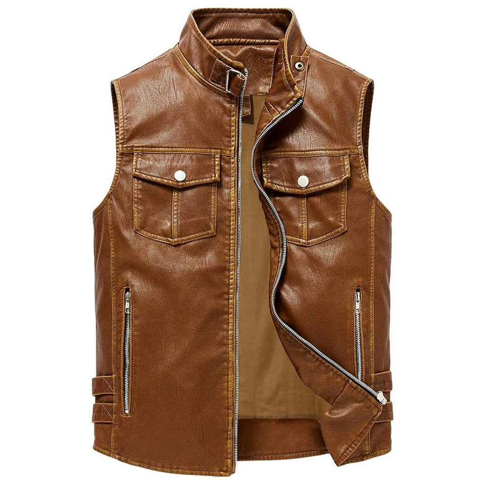 Nouveau Gilet en Cuir de Vachette pour Homme Style Personnalisé, Gilet de Motard en Cuir de Haute Qualité, Gilet à Col Montant pour Homme CP-MLV-12