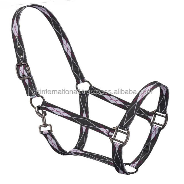 Nouveau design personnalisé fait à la main sangle en nylon de concepteur licou en nylon de cheval en plein cob tailles matériel en acier inoxydable nickel