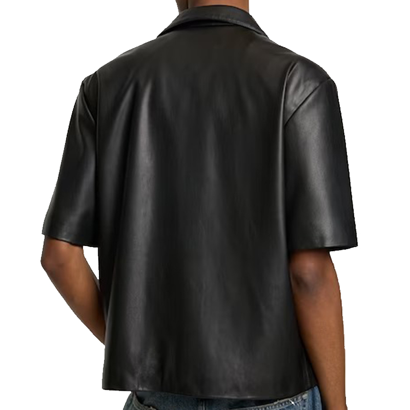 New Custom logo High Quality Faux Leather Button-up Bowling Shirt for Men's Casual Shirts