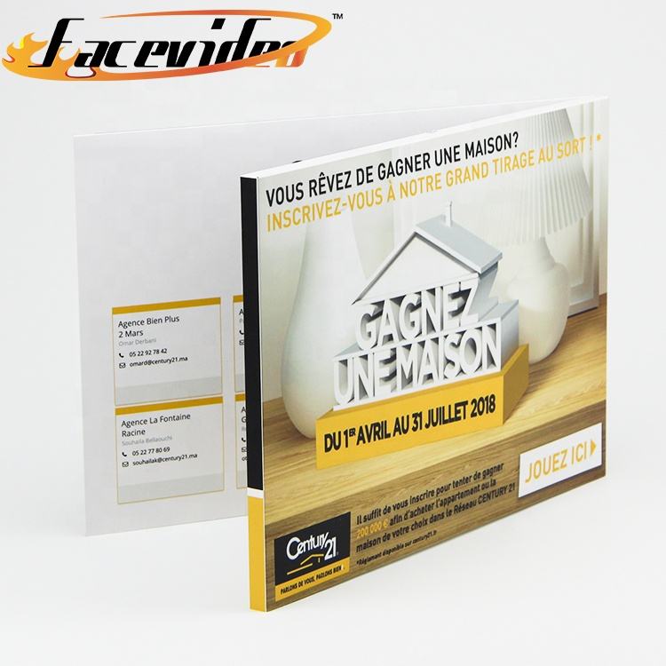Brochure numérique de carte de vœux vidéo promotionnelle en papier lcd, 4.3 2.4 sur mesure 5 7 10 pouces