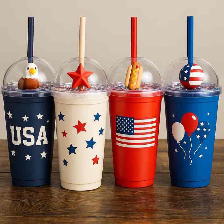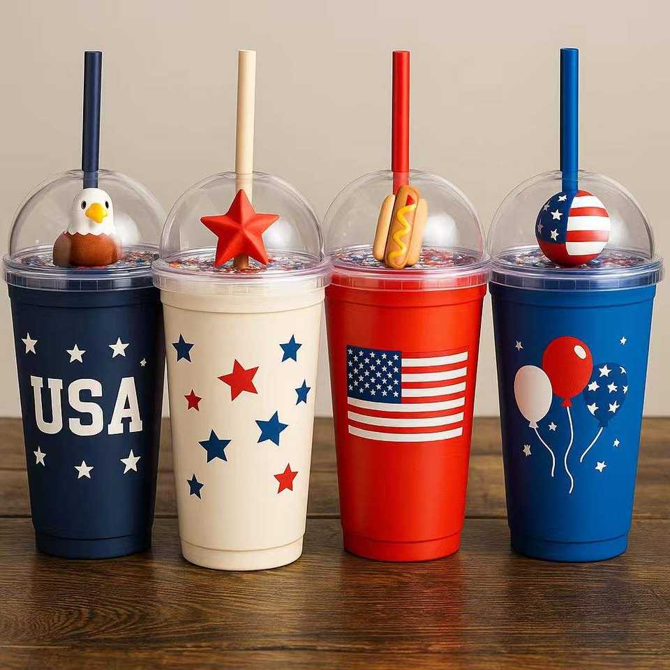 Nouveau Gobelet Réutilisable Personnalisable 16oz/22oz Coloré à Double Paroi Sans BPA en PP avec Couvercle et Paille – Nouveau Design Tendance pour Fêtes