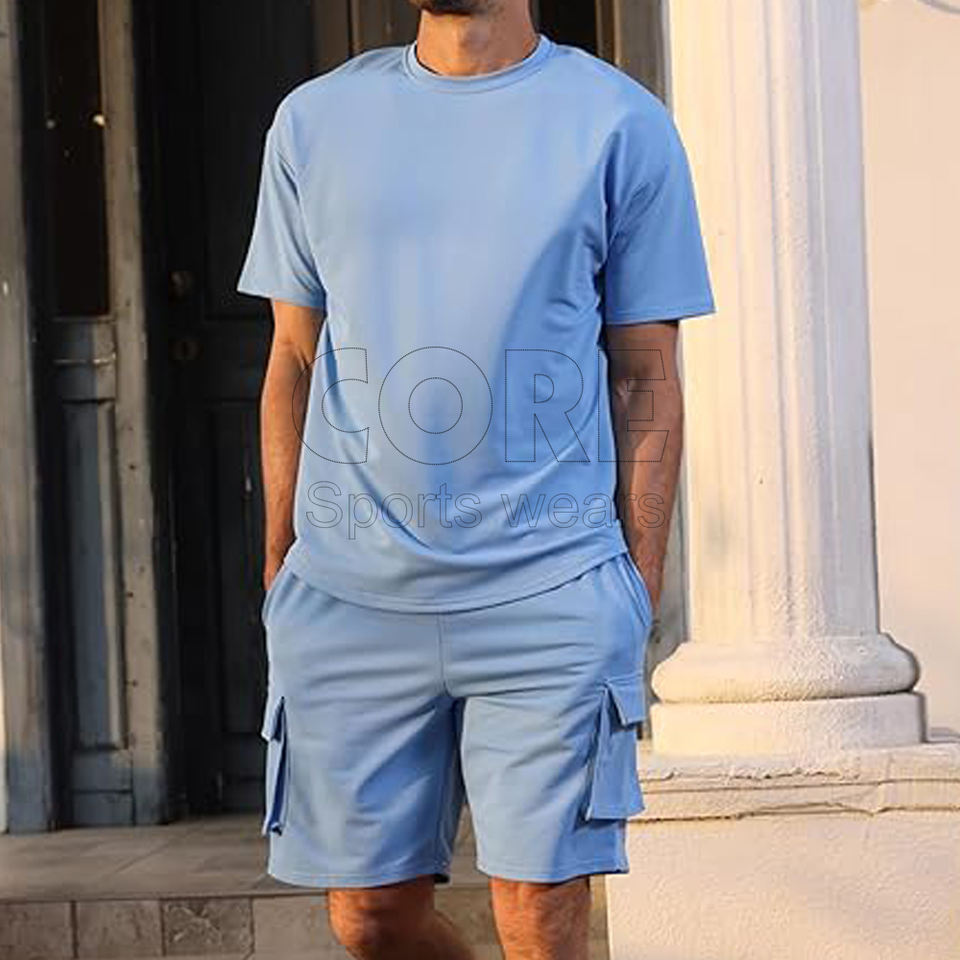 Nouveau personnaliser de haute qualité hommes ensemble court été respirant t-shirt 2 pièces ensembles de vêtements d'extérieur Cargo Style Shorts