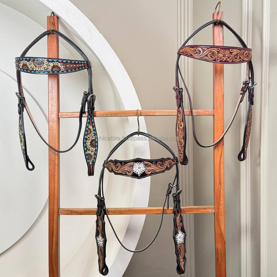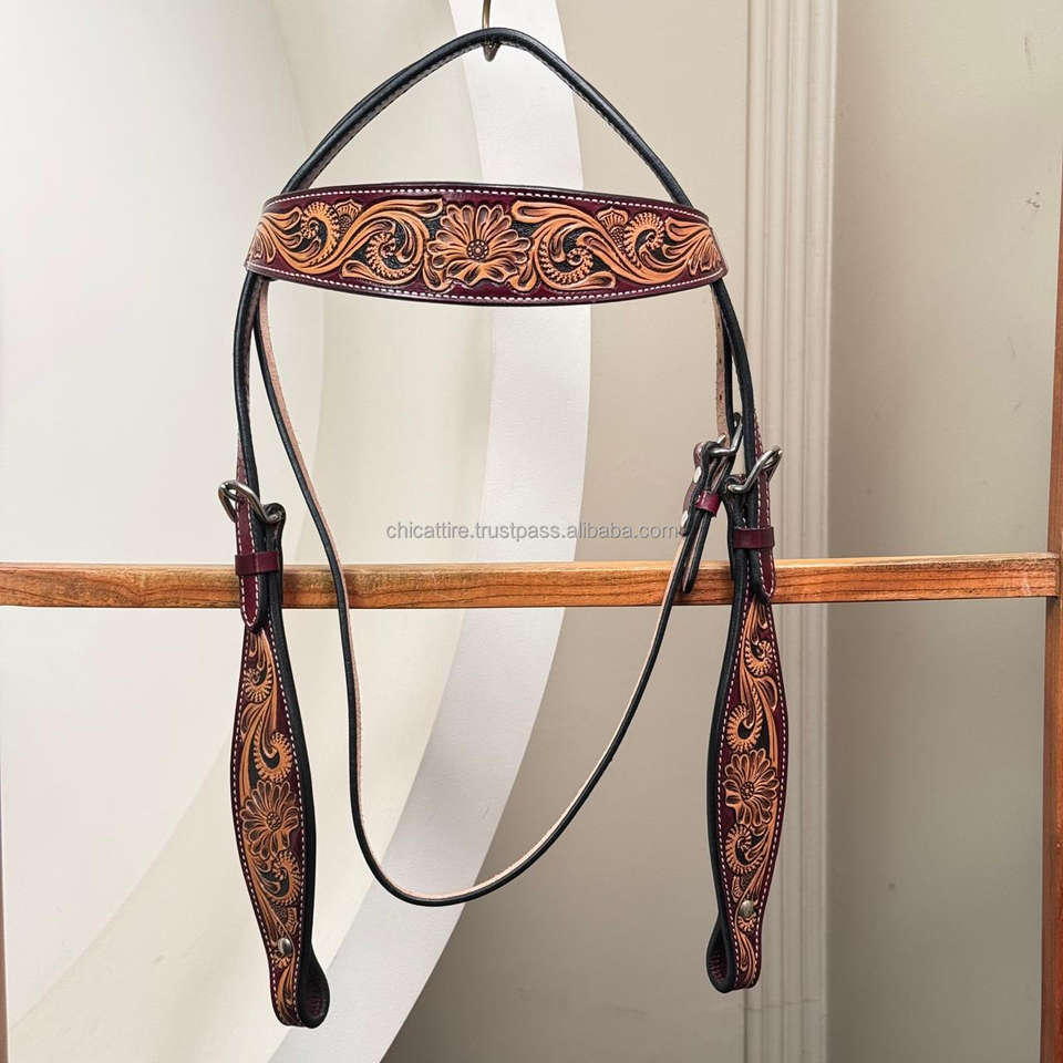 Nouveau casque de cheval en cuir usiné à la main de conception personnalisée pour la tête de bride occidentale équipement de cheval en cuir de vachette véritable