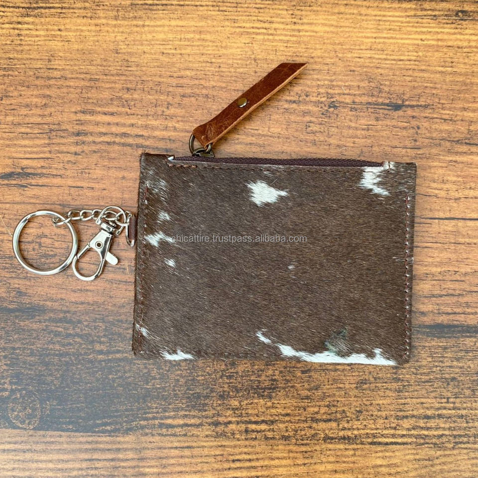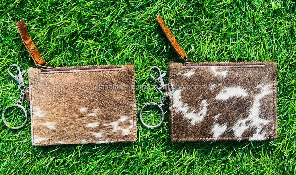 Porte-monnaie et porte-cartes élégants en cuir de vache et fourrure